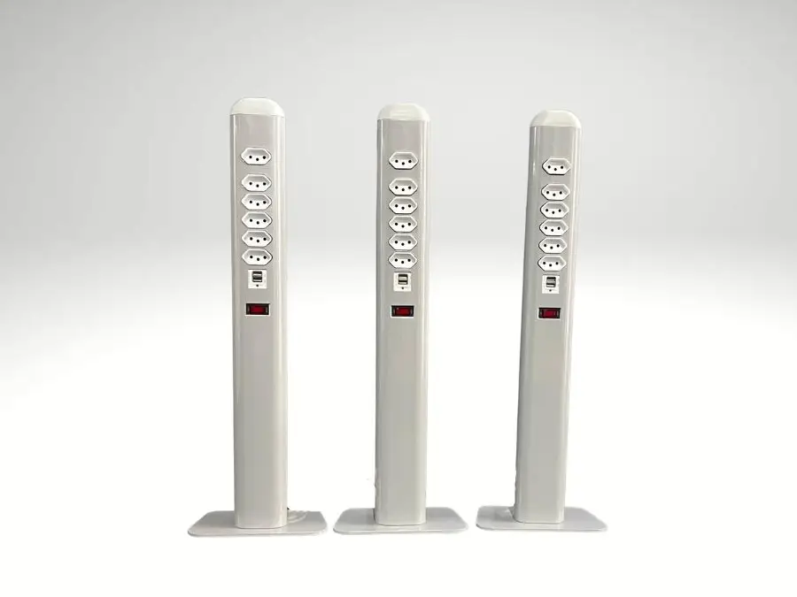 O Carregador Coletivo de Celulares possui compartimentos com os três cabos universais de carregadores, USB e tomadas, basta ligar o cabo e começar a carregar.